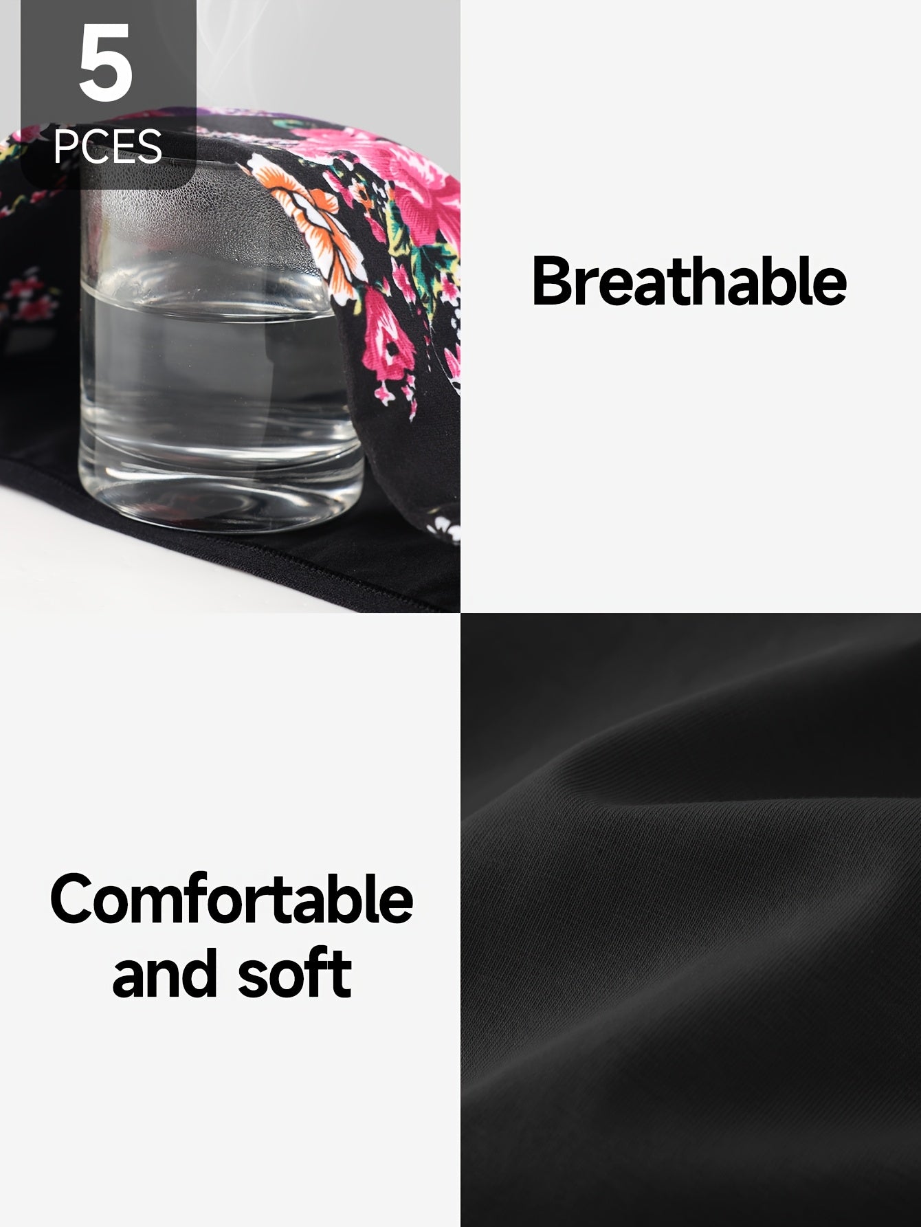 5pcs High-Waisted Women's Panties with Floral Wide Waistband Design, Multiple Colors Available, Daily Essentials, Comfortable Underwear, Stylish Panties, Floral Design, Durable Stitching, Soft Fabric, Multipack Panties, Women
