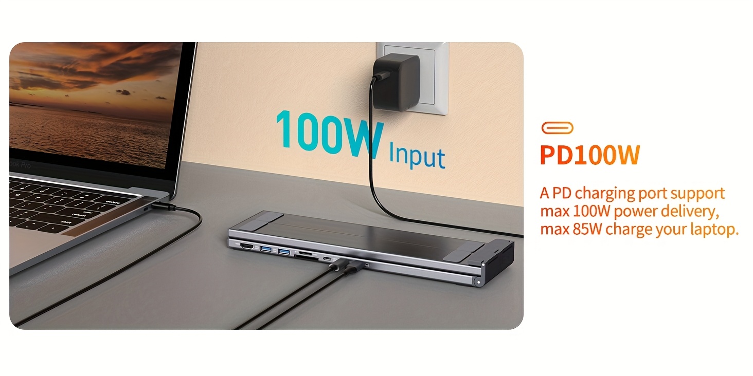 4K HDTV & 85W Power Delivery: You can use this universal laptop docking station stand to mirror or expand your For MacBook or Windows laptop to a larger high-resolution display. The resolution can reach up to 4K UHD (3840x2160@30Hz) via the HDTV port, perfect for those who need to deal with Ultra HD image and video output tasks. (Please note: please ensure the USB C port for your laptop supports DisplayPort Alt-mode before purchase.)