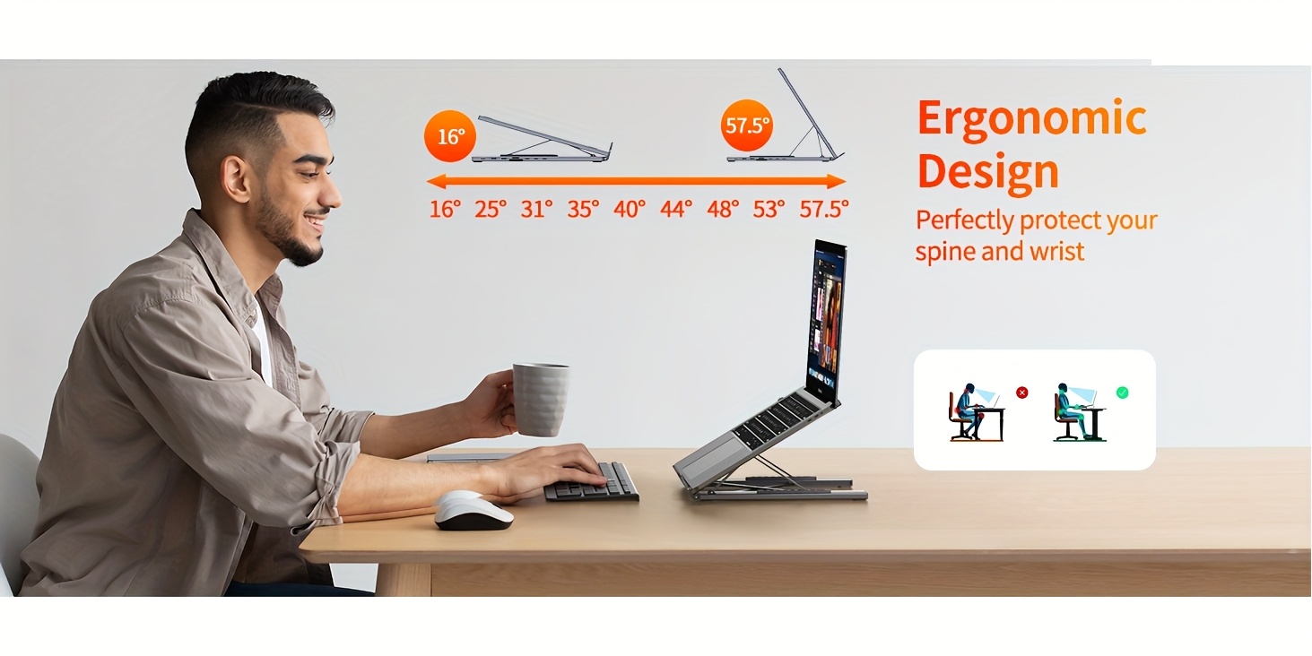 Ergonomic Design Laptop Stand: The laptop docking station stand features 6-level to adjust the height, allowing you to choose the perfect angle for your posture and body type. It helps you to release the tension of your neck pain, back pain, and eye fatigue making you work comfortably and keep healthy. The triangle support design makes the laptop stand more stable. The non-slip silicone pad on the stand can fix your laptop in place and protect your device from scratches and slipping.