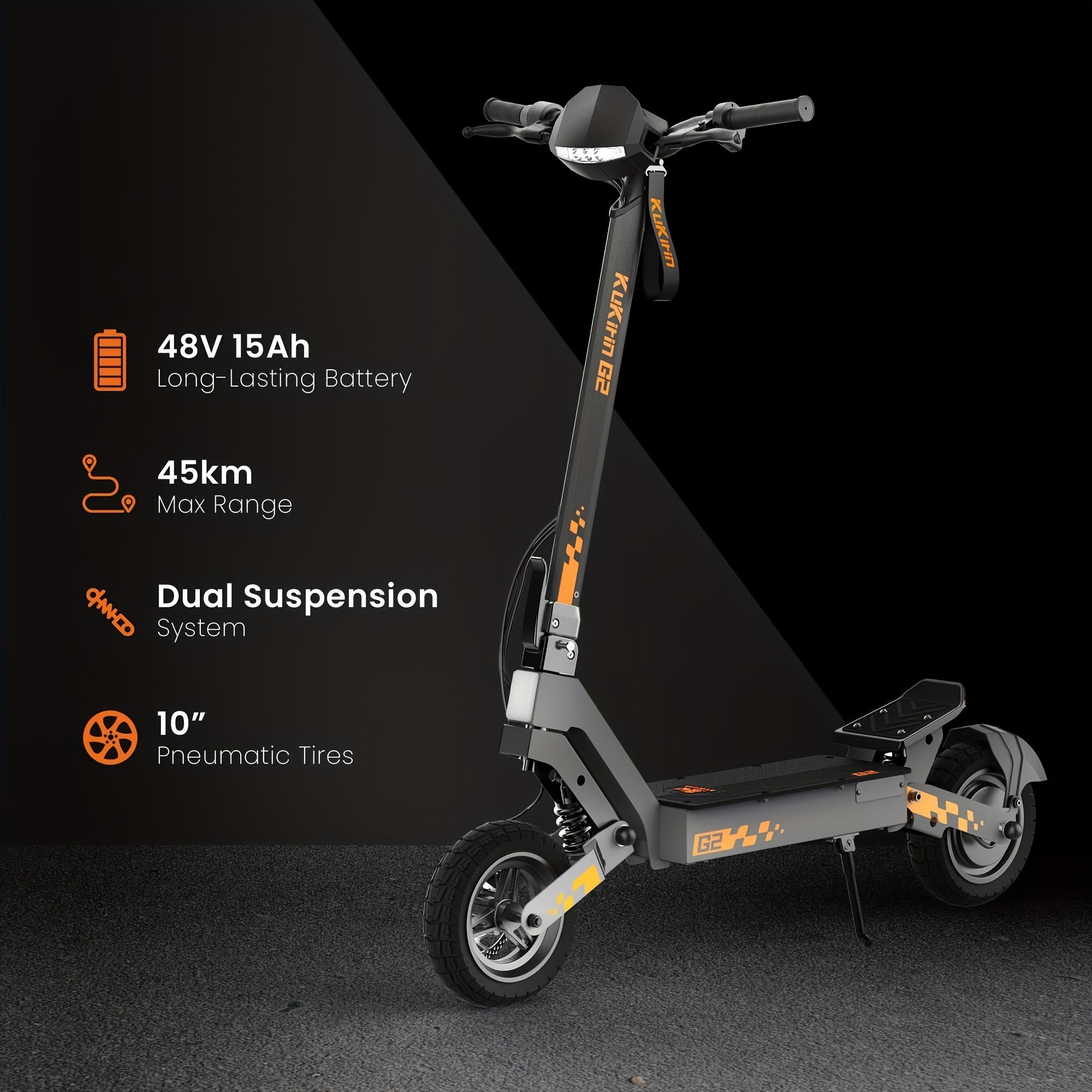 KuKirin G2 Electric Scooter for Adults - 55km Long Range, 48V 15.6Ah Removable Battery, Powerful Motor, Dual Suspension & 25.4cm All-Terrain Tires, Foldable with LCD Display, 3 Speed Modes, Front Brake System, 36V-100V Compat
