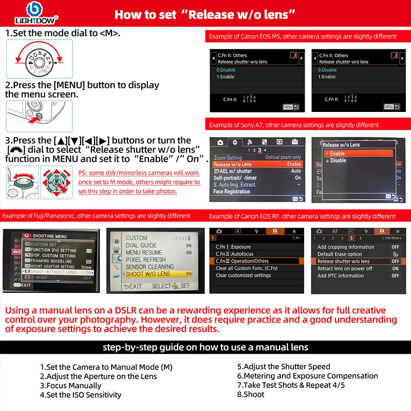 Applicable Camera Specifications: APS-C Mirrorless Camera,M4/3 Frame DSLR Camera,Full Frame Mirrorless Camera,Full Frame DSLR Camera,M4/3 Frame Mirrorless Camera,APS-C DSLR Camera