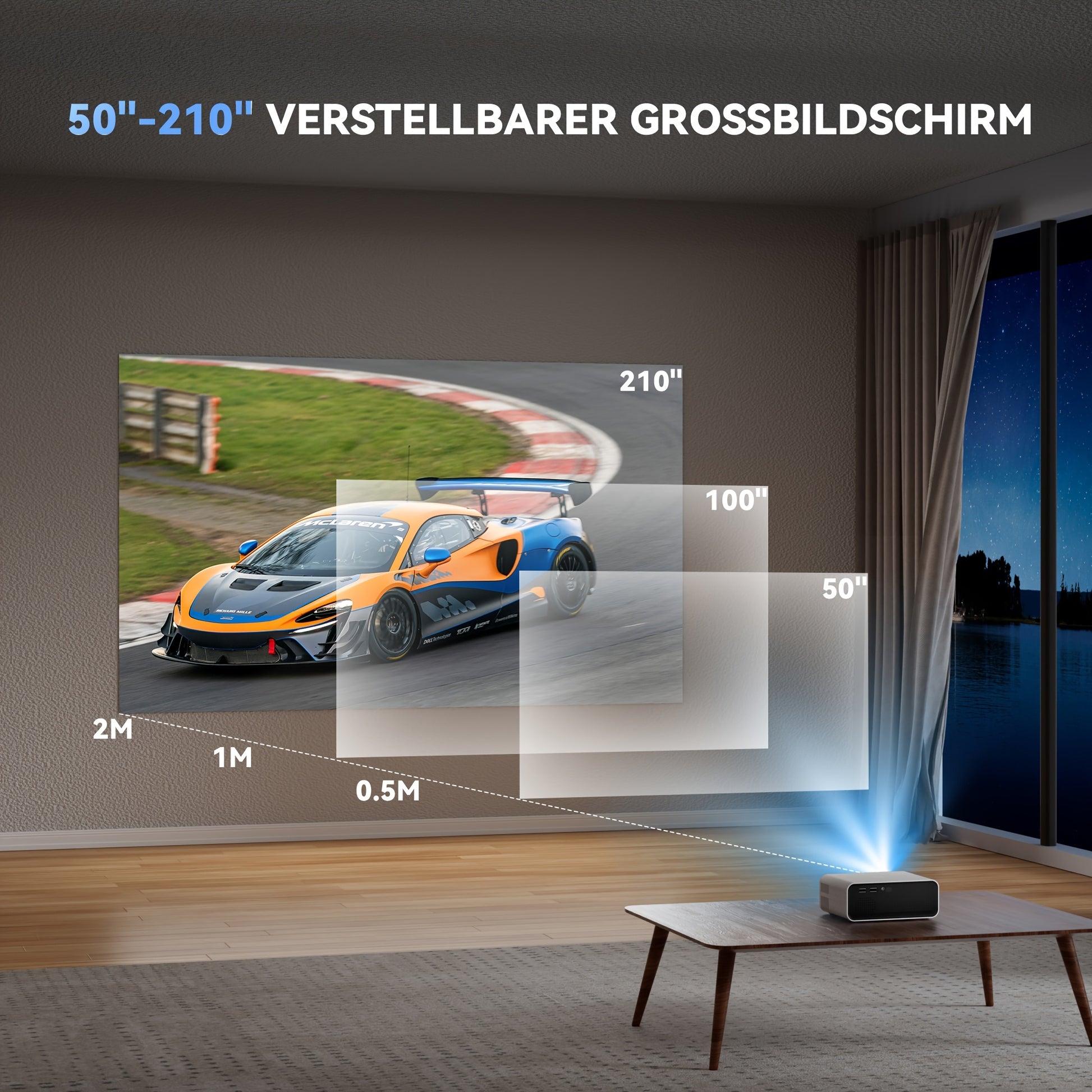 [Upgraded 1080P Native Full HD, 4K Support] This Full HD projector supports 1920*1080 native resolution, combined with a 1320 Lumen light source and a high dynamic contrast ratio of 10000:1, 210" large display, bringing you an exceptionally vivid colour reproduction and clear experience.