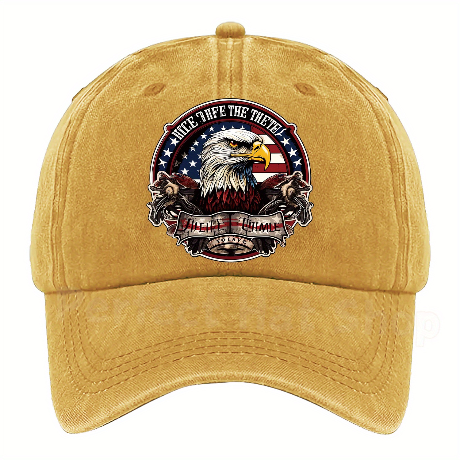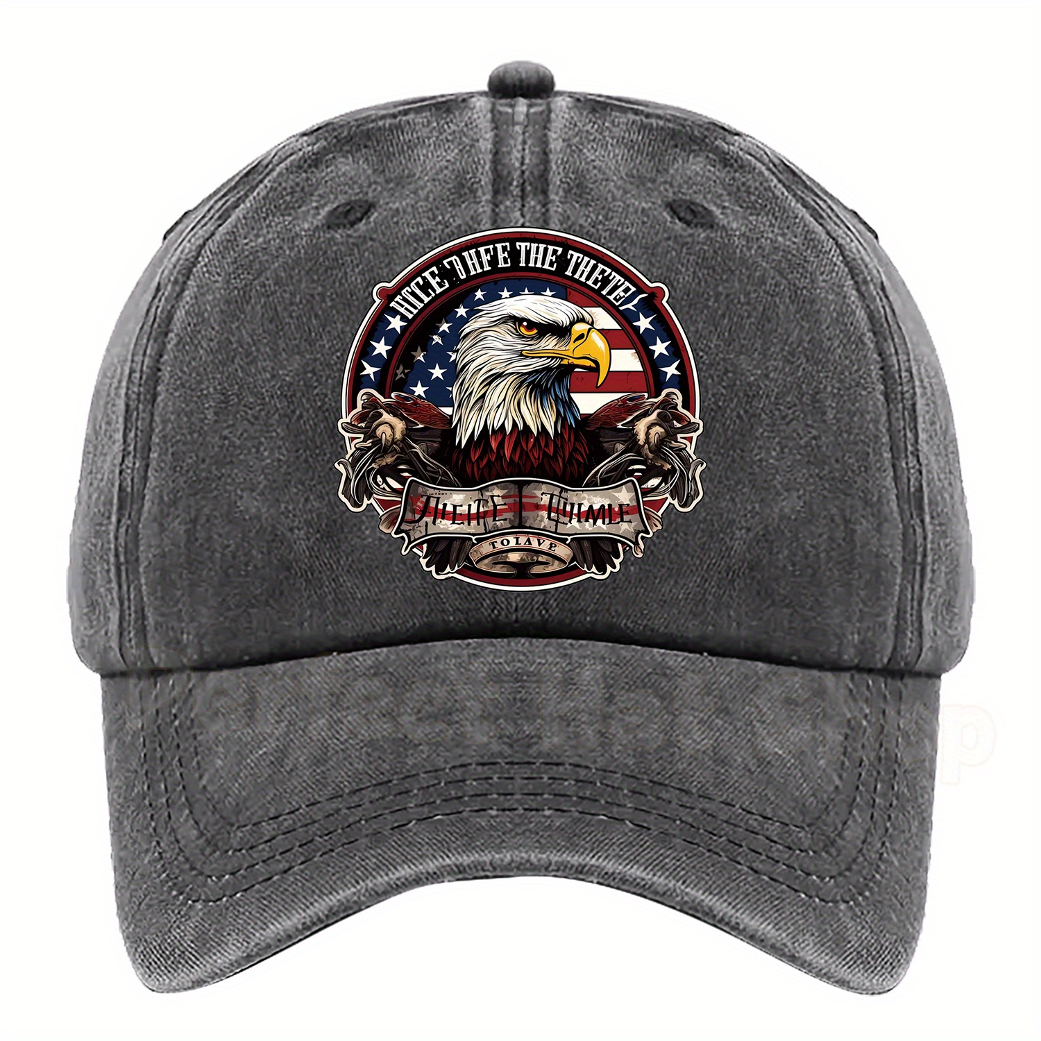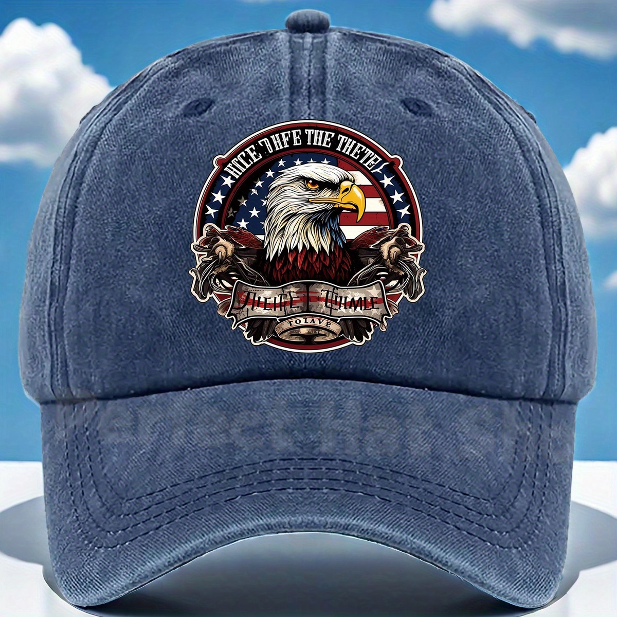 Patriotic Bald Eagle Military Print Baseball Cap - Adjustable Fit,, Machine Washable - Dark Blue with American Flag Design & "Eagle Motif" Patch