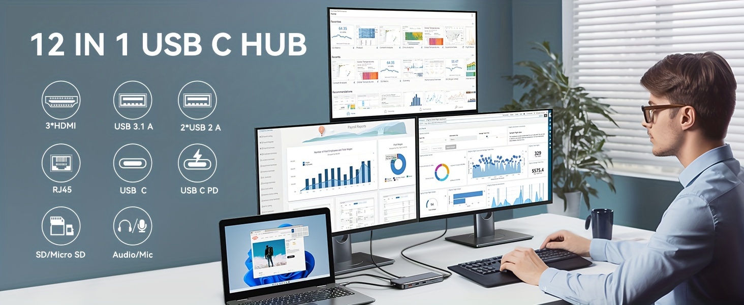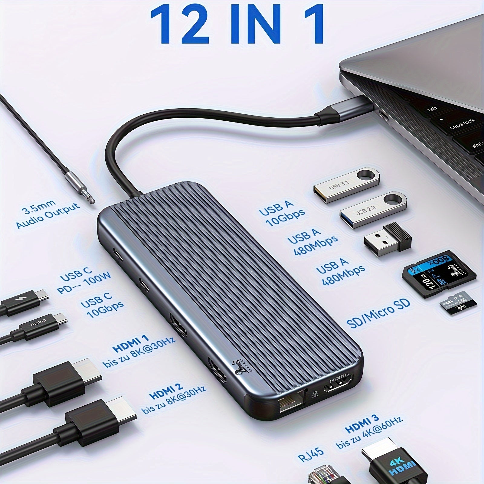 USB C Docking Station 3 Monitors, LIONWEI USB C Hub to 3 HDMI Docking Station Triple Monitor with 10Gbps USB C/ A 3. 1, 100W PD, Ethernet, Audio Ports for Dell/ HP/ Lenovo/ MacBook