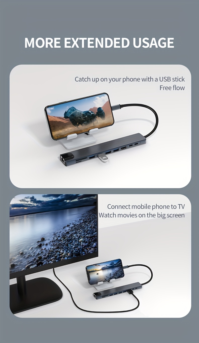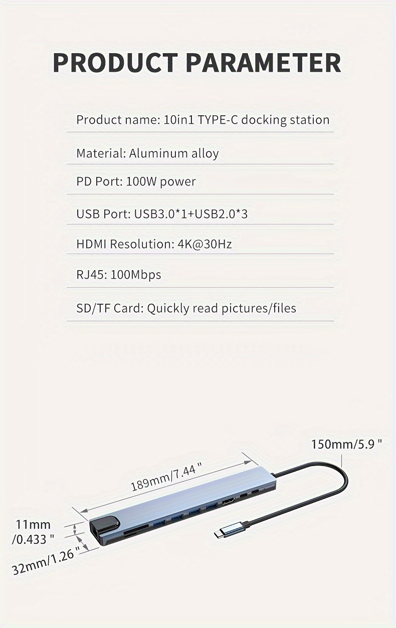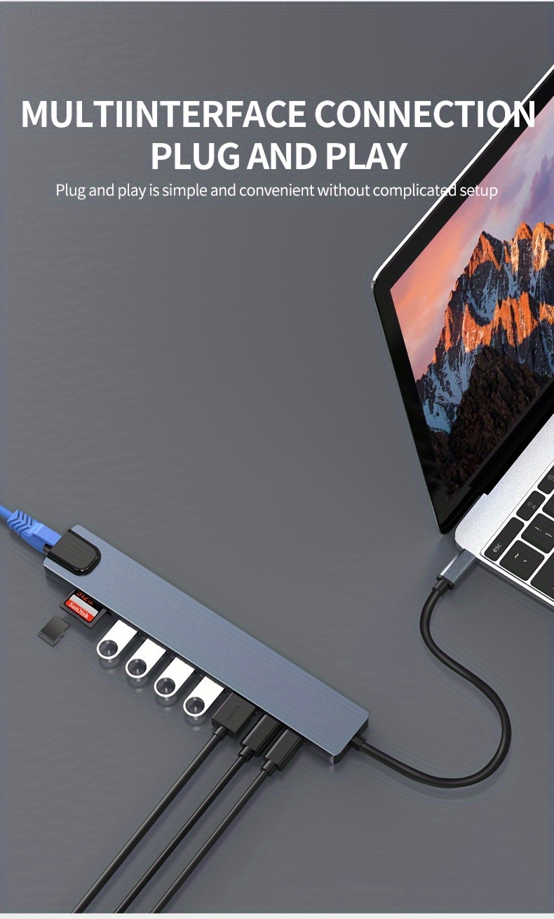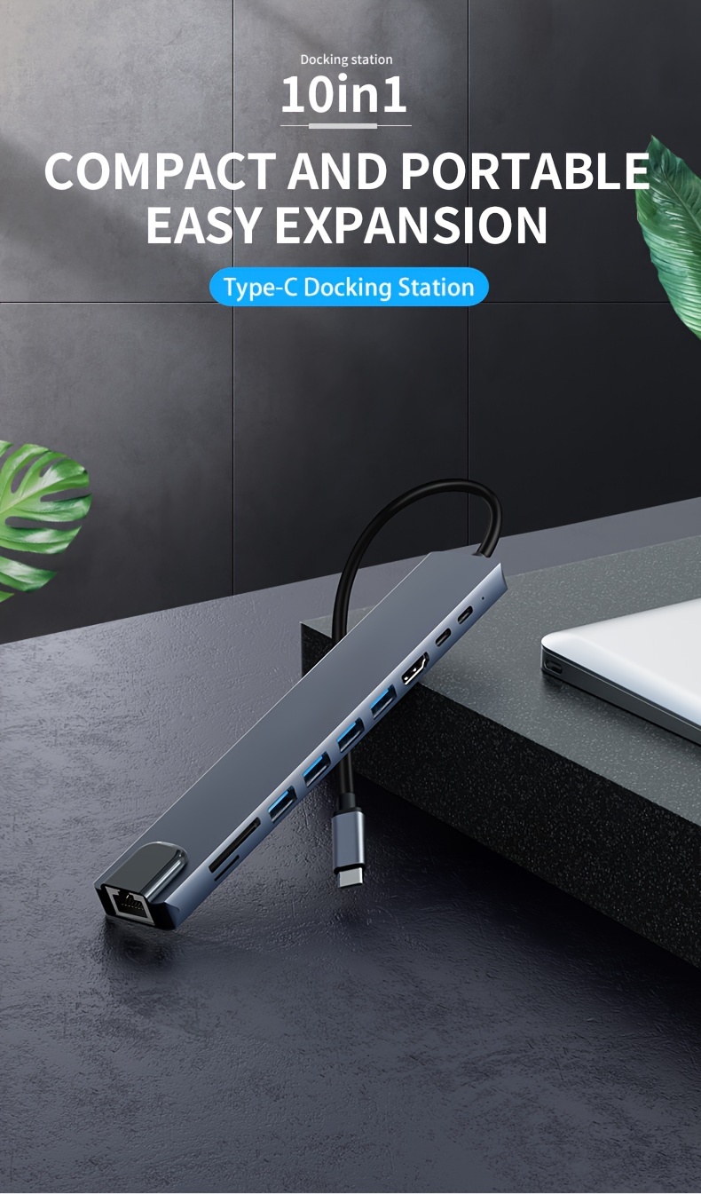 USB C Hub Multiport Adapter, 10-in-1 USB C Dongle, USB-C Hub for MacBook Pro with HDTV 4K 30Hz, Ethernet, 100W Power Delivery, 2 USB 2.0 Ports, SD/TF Card Reader, for HP/Dell/Lenovo Laptops