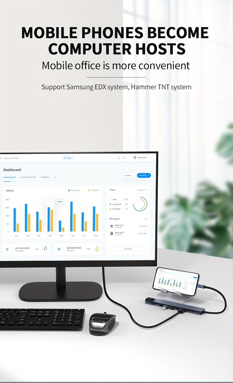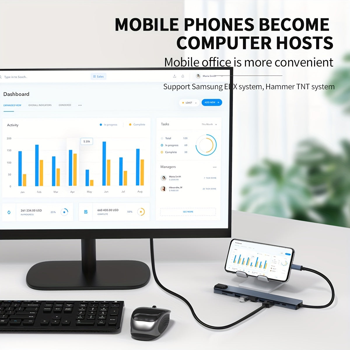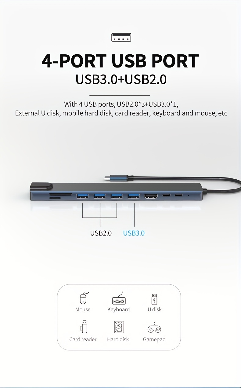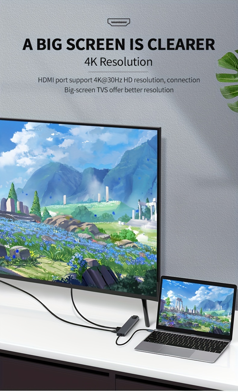 USB C Hub Multiport Adapter, 10-in-1 USB C Dongle, USB-C Hub for MacBook Pro with HDTV 4K 30Hz, Ethernet, 100W Power Delivery, 2 USB 2.0 Ports, SD/TF Card Reader, for HP/Dell/Lenovo Laptops