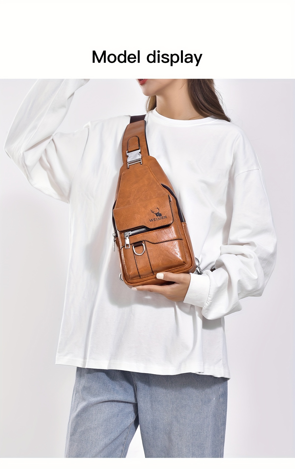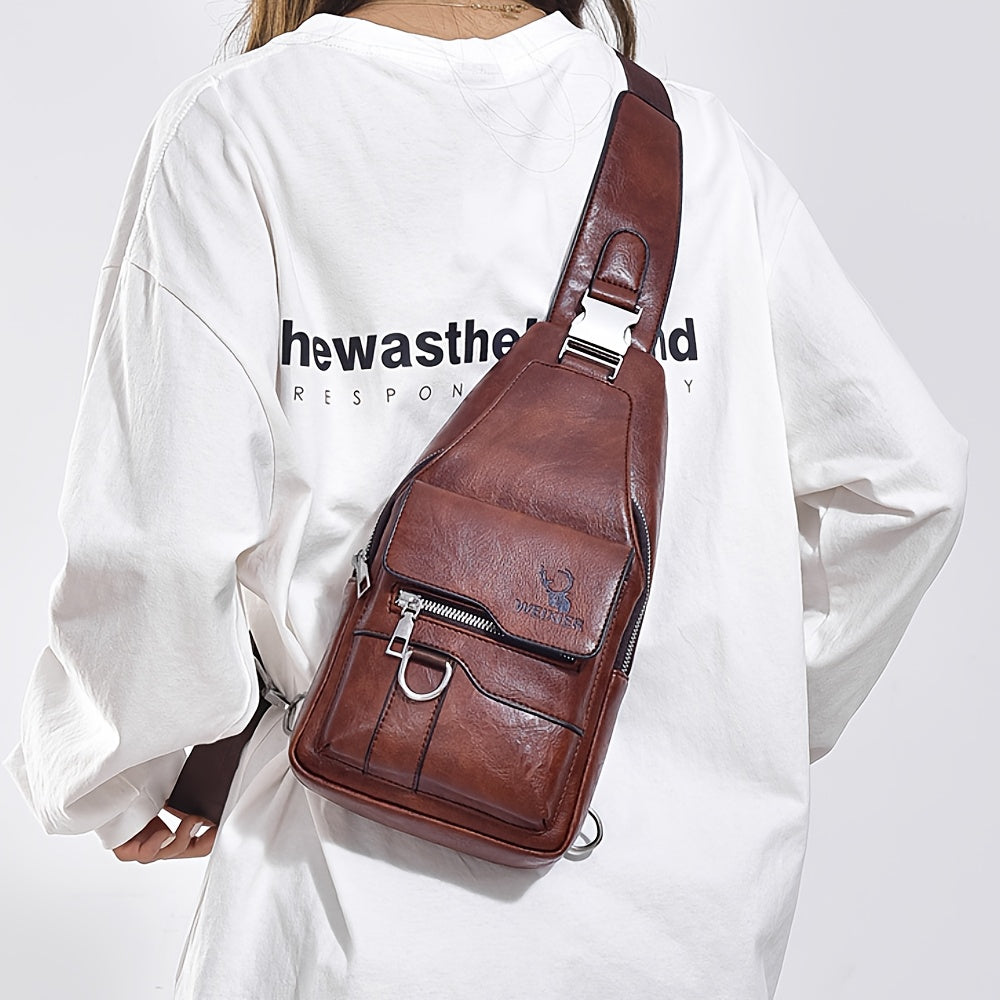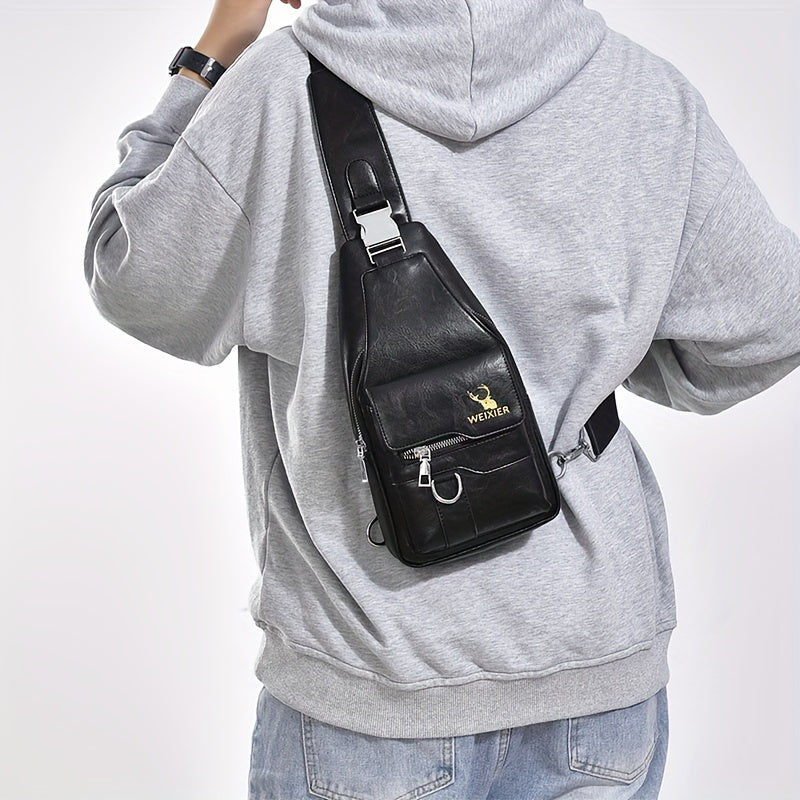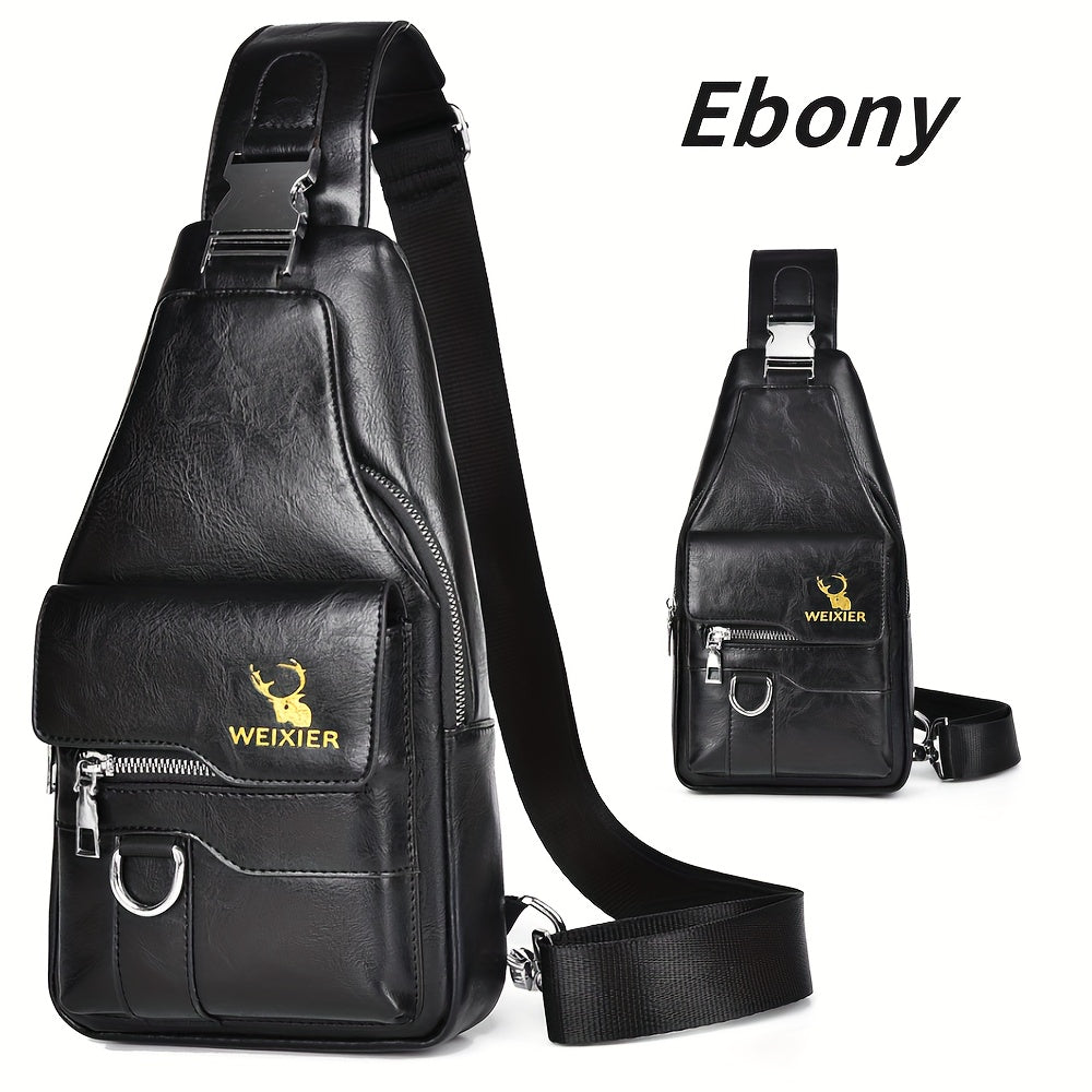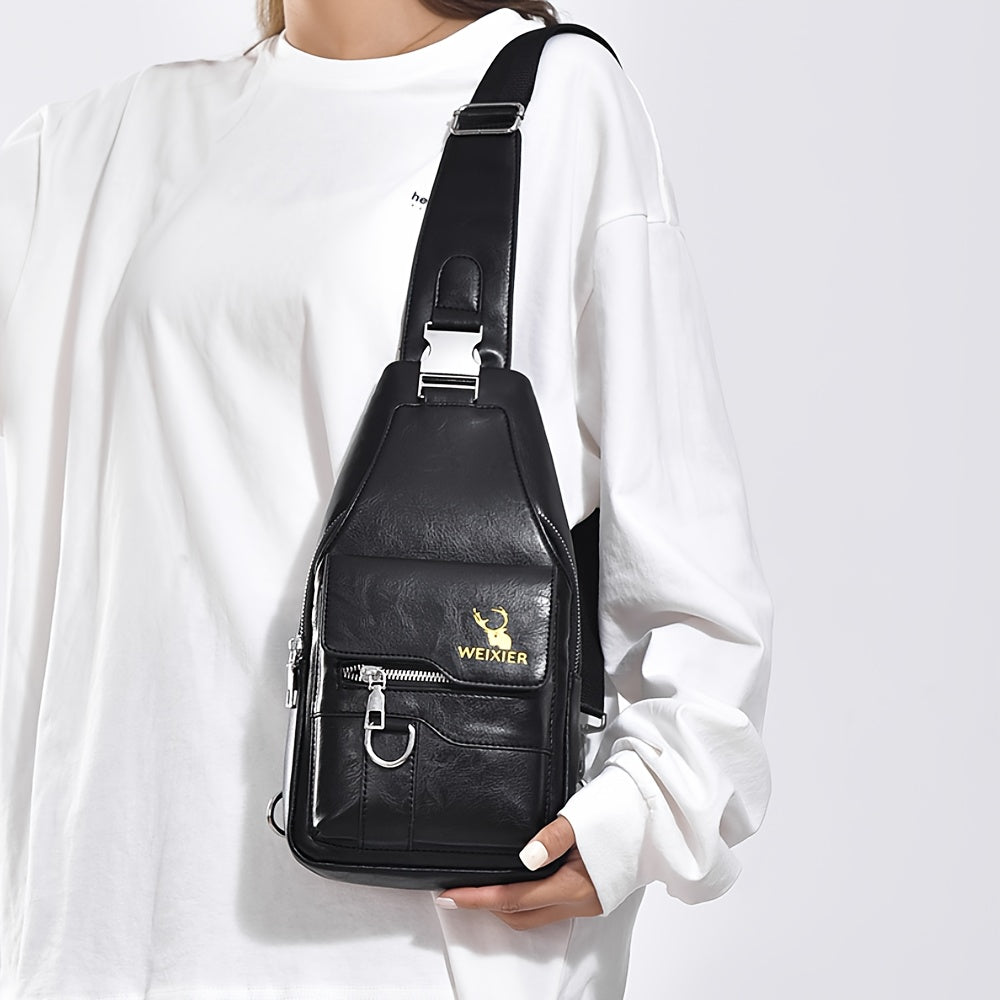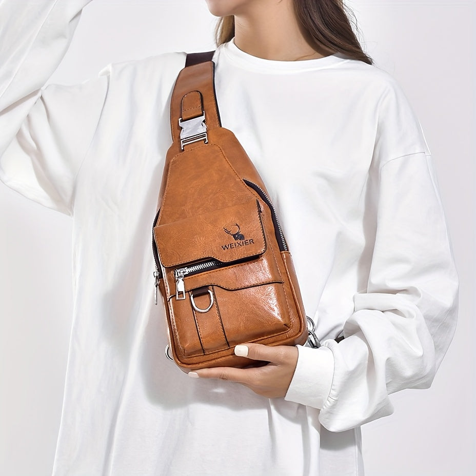 WEIXIER Vintage-Style PU Leather Sling Bag with Adjustable Strap, Multiple Pockets, Large Capacity – Brown, Black, Gray Options for Work, School, Travel & Casual Use, Small Crossbody Bag