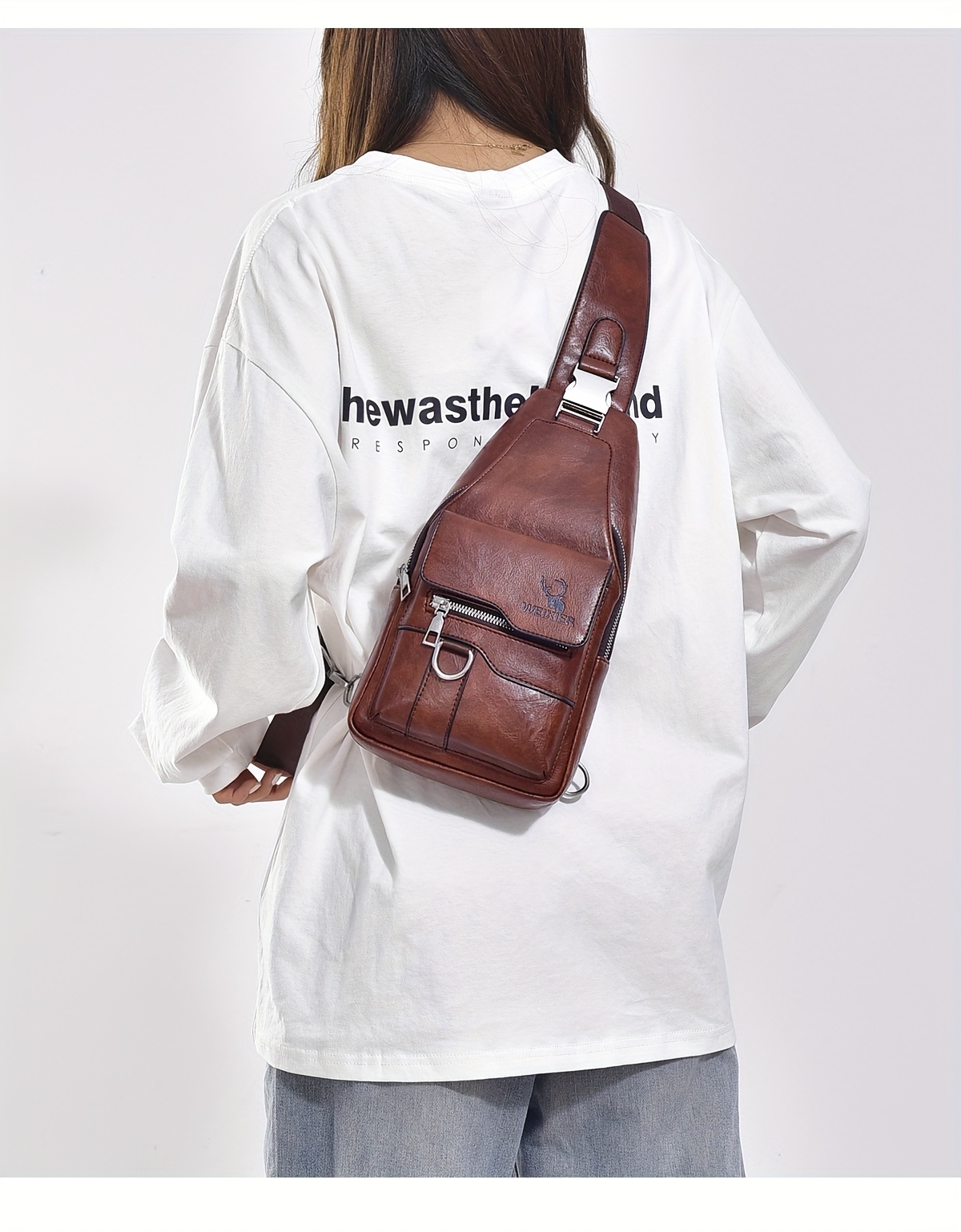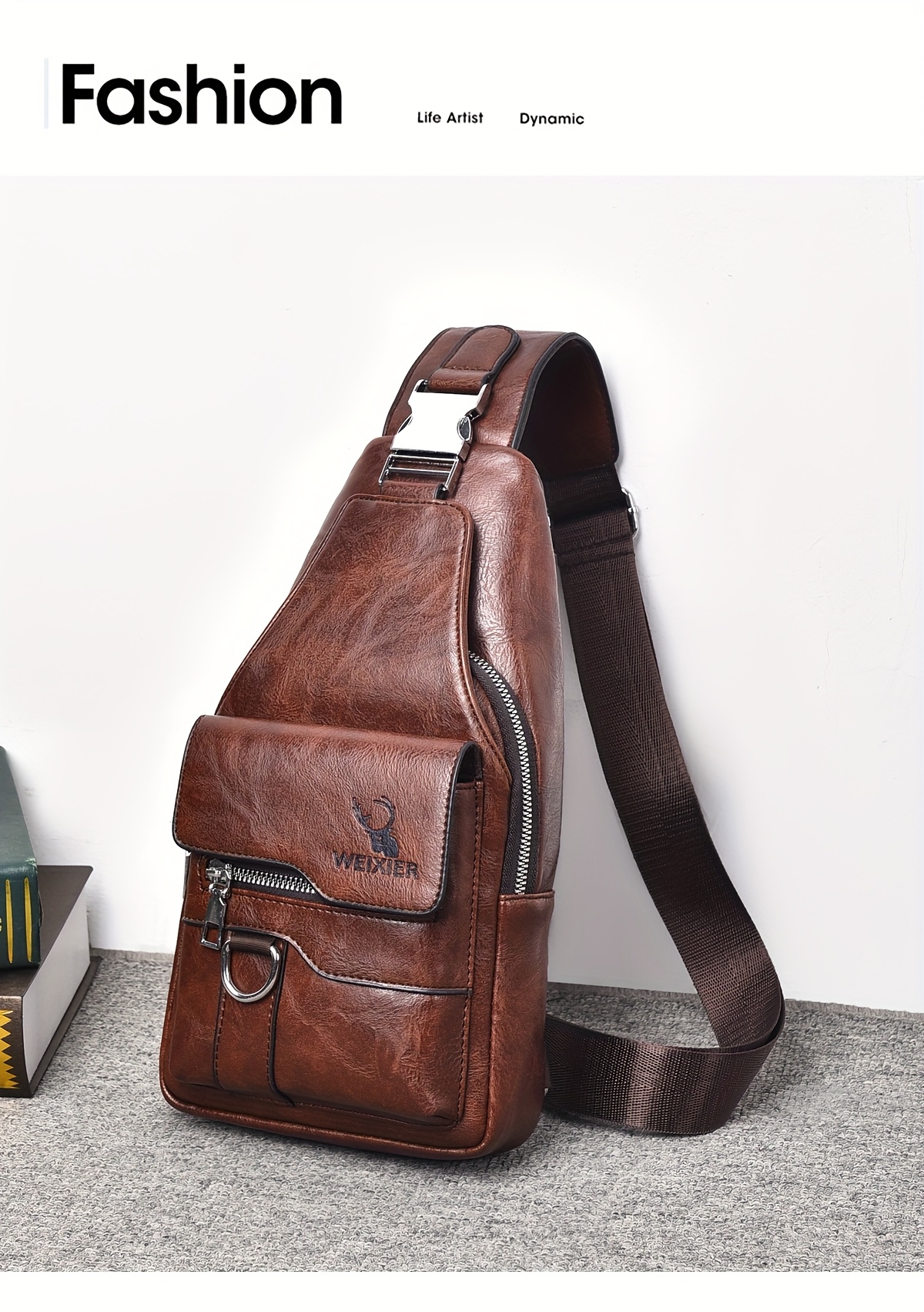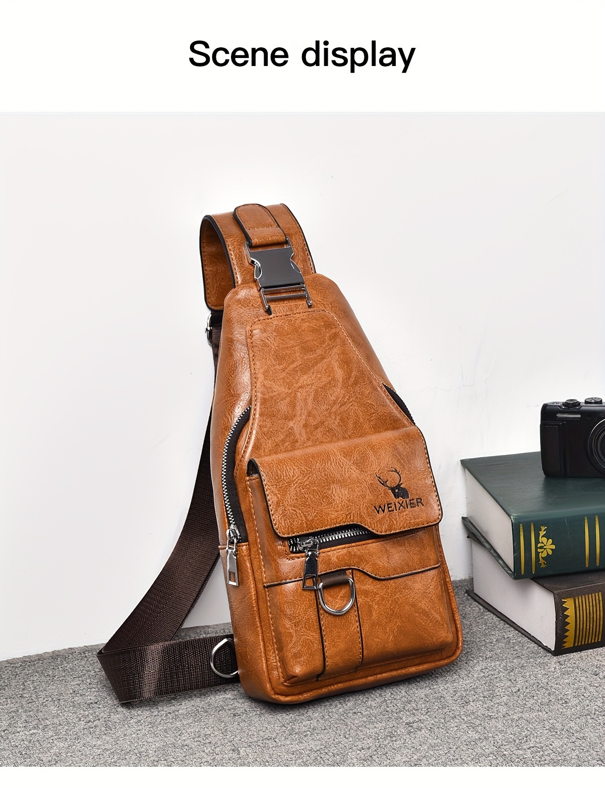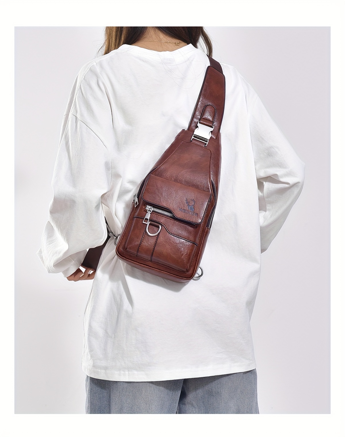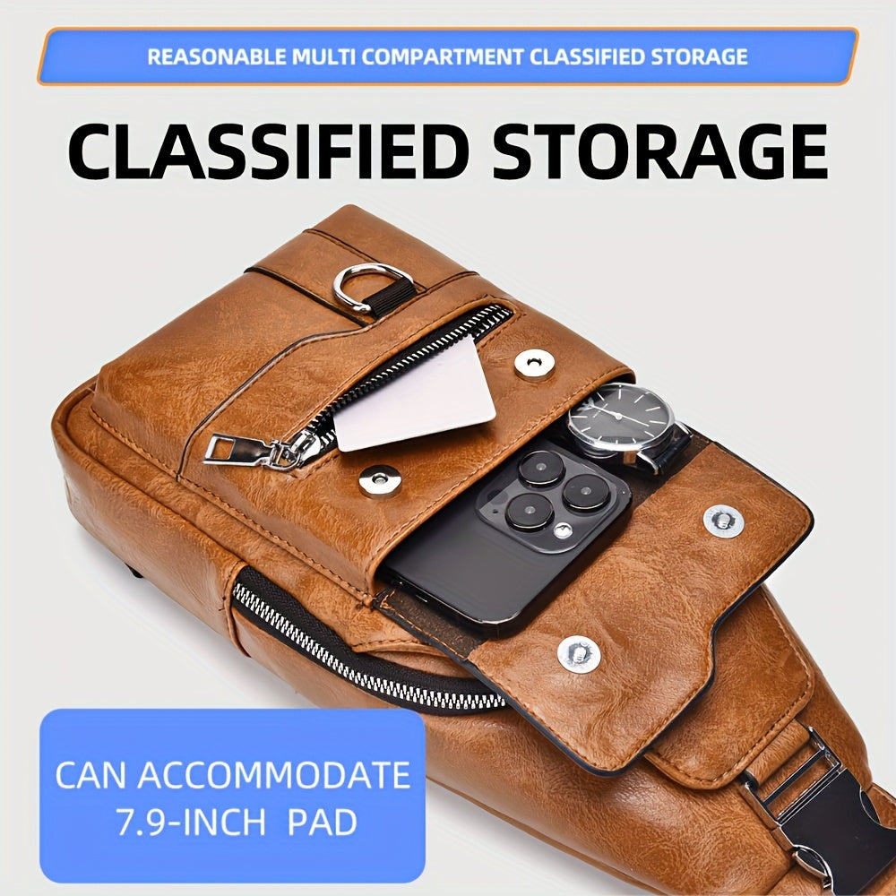 WEIXIER Vintage-Style PU Leather Sling Bag with Adjustable Strap, Multiple Pockets, Large Capacity – Brown, Black, Gray Options for Work, School, Travel & Casual Use, Small Crossbody Bag