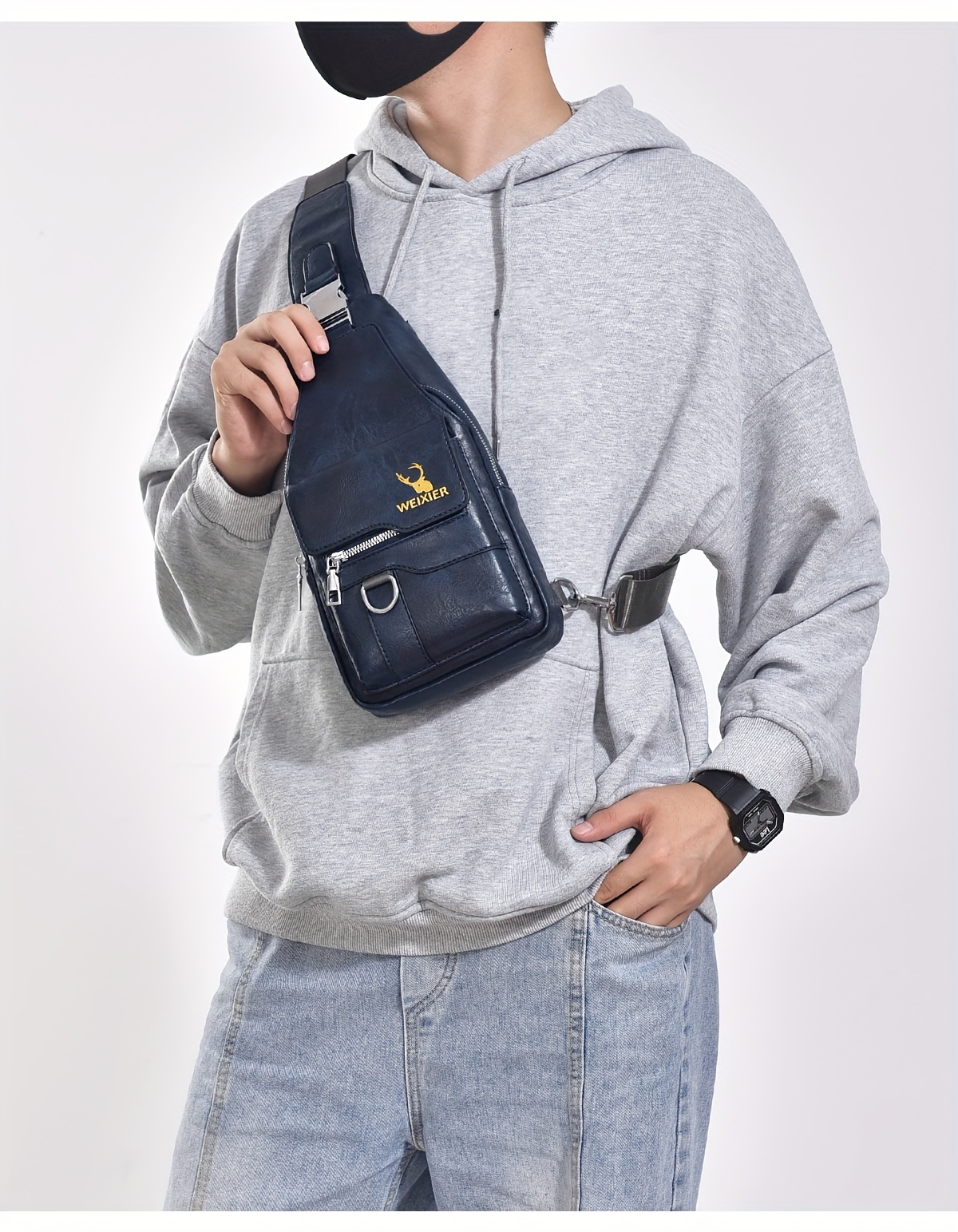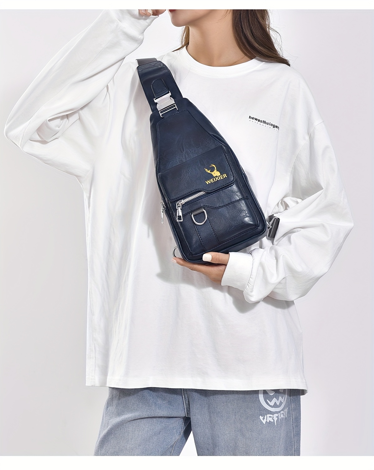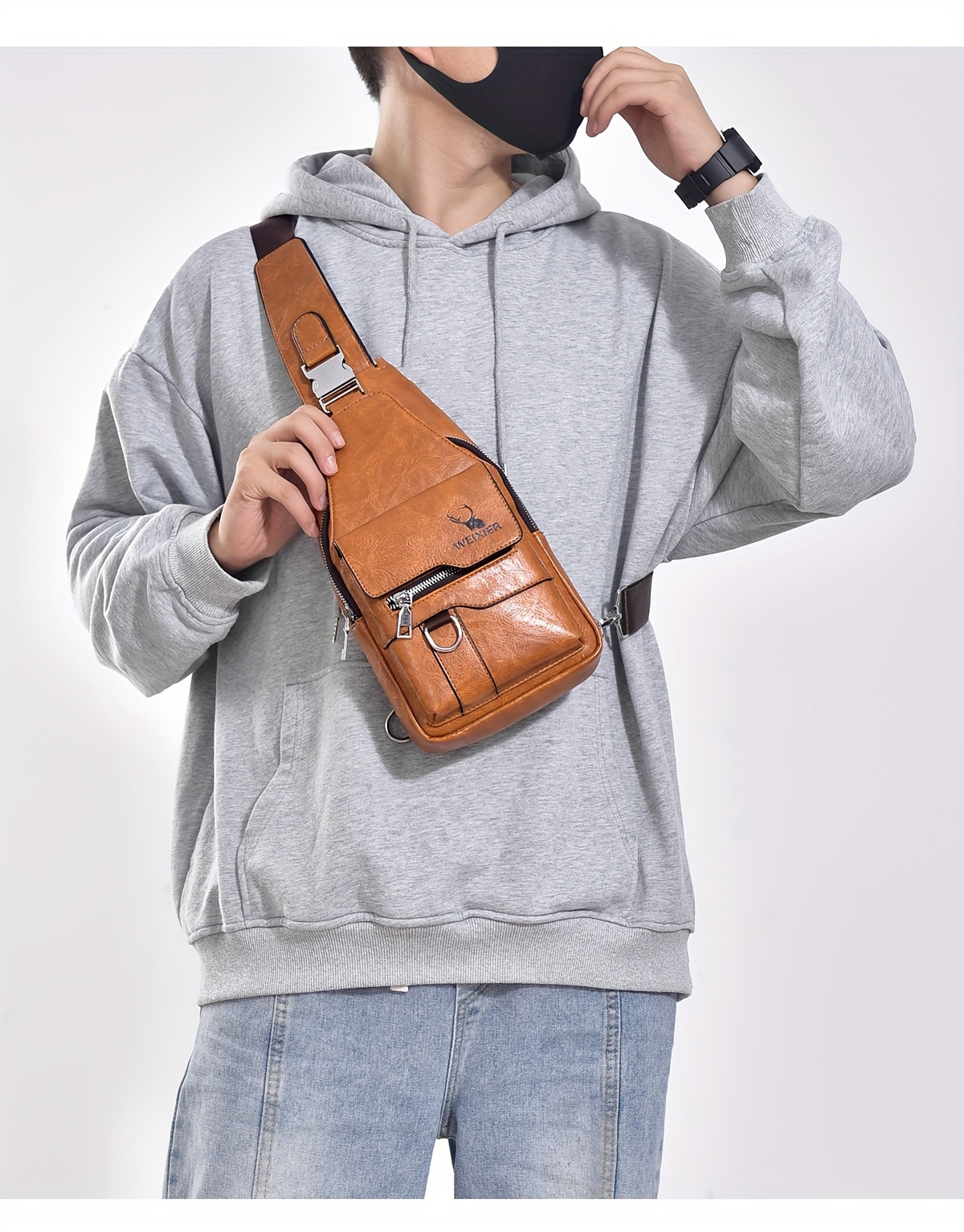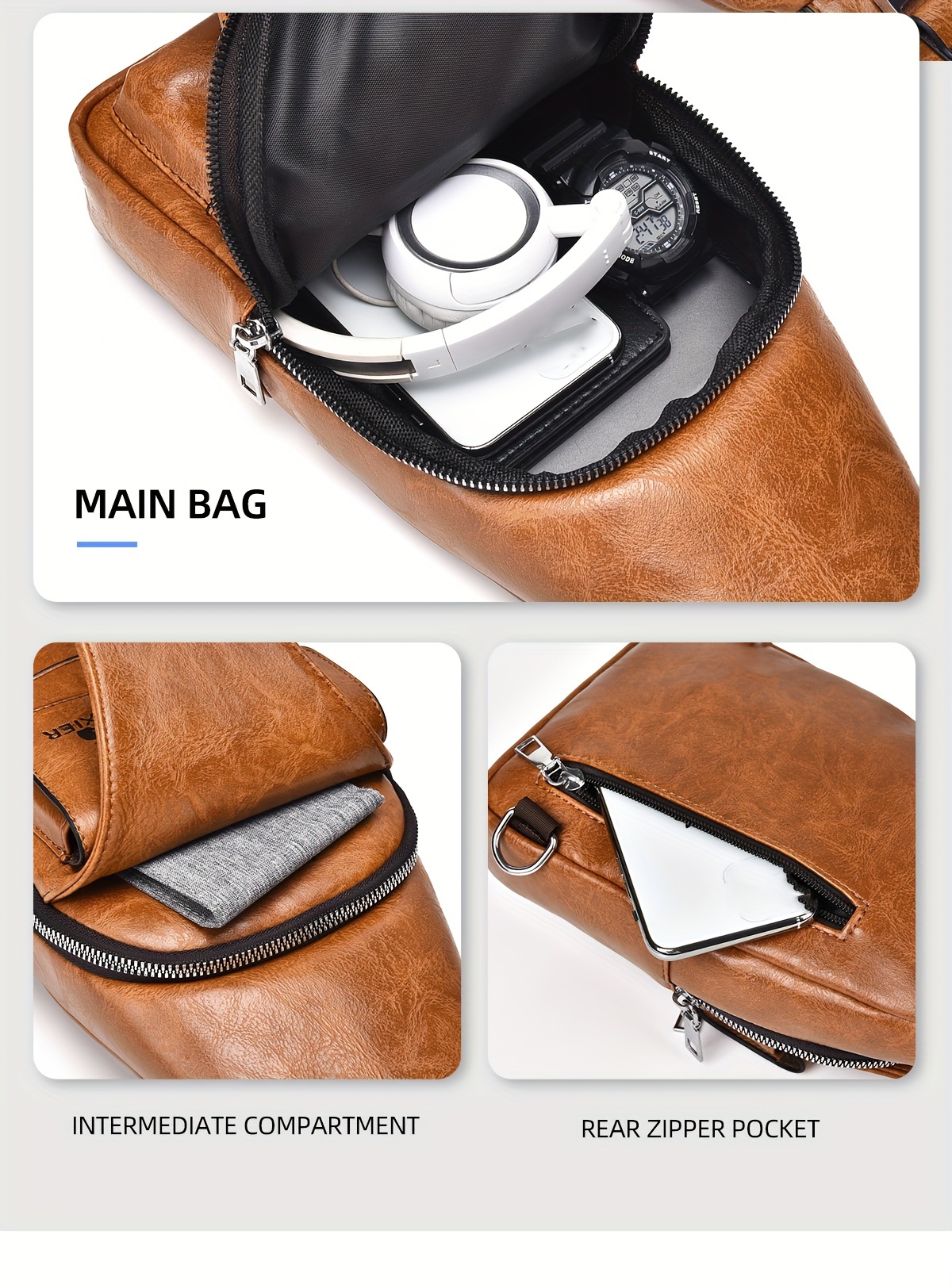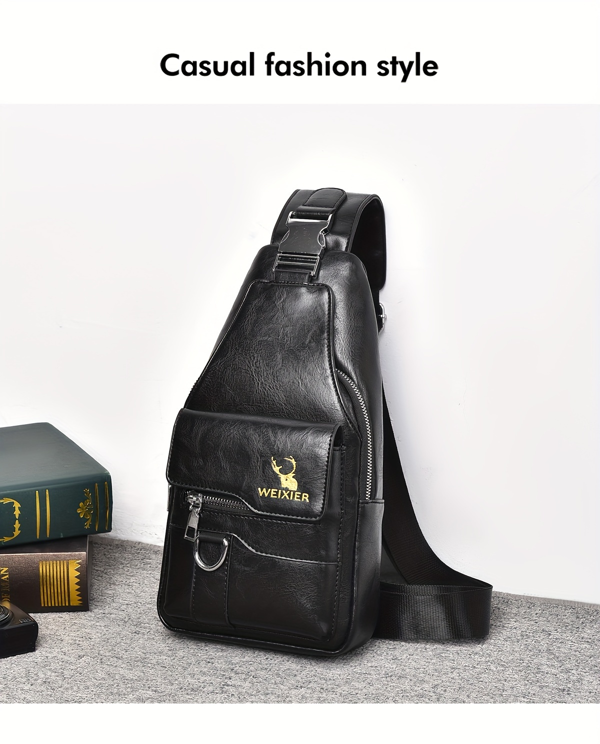WEIXIER Vintage-Style PU Leather Sling Bag with Adjustable Strap, Multiple Pockets, Large Capacity – Brown, Black, Gray Options for Work, School, Travel & Casual Use, Small Crossbody Bag