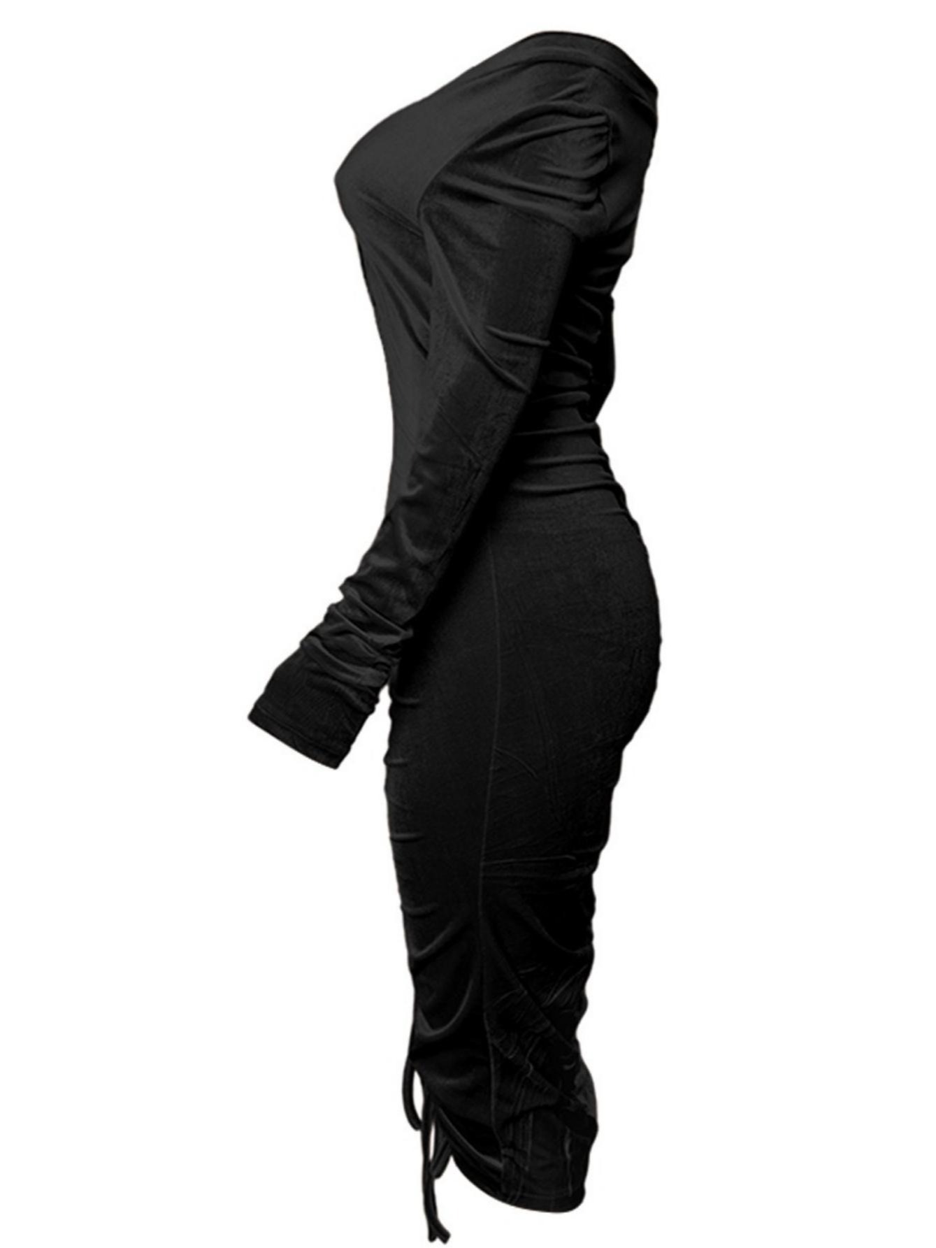 Women's Dresses V Neck Off The Shoulder Velvet Ruched Mid-length Dresses