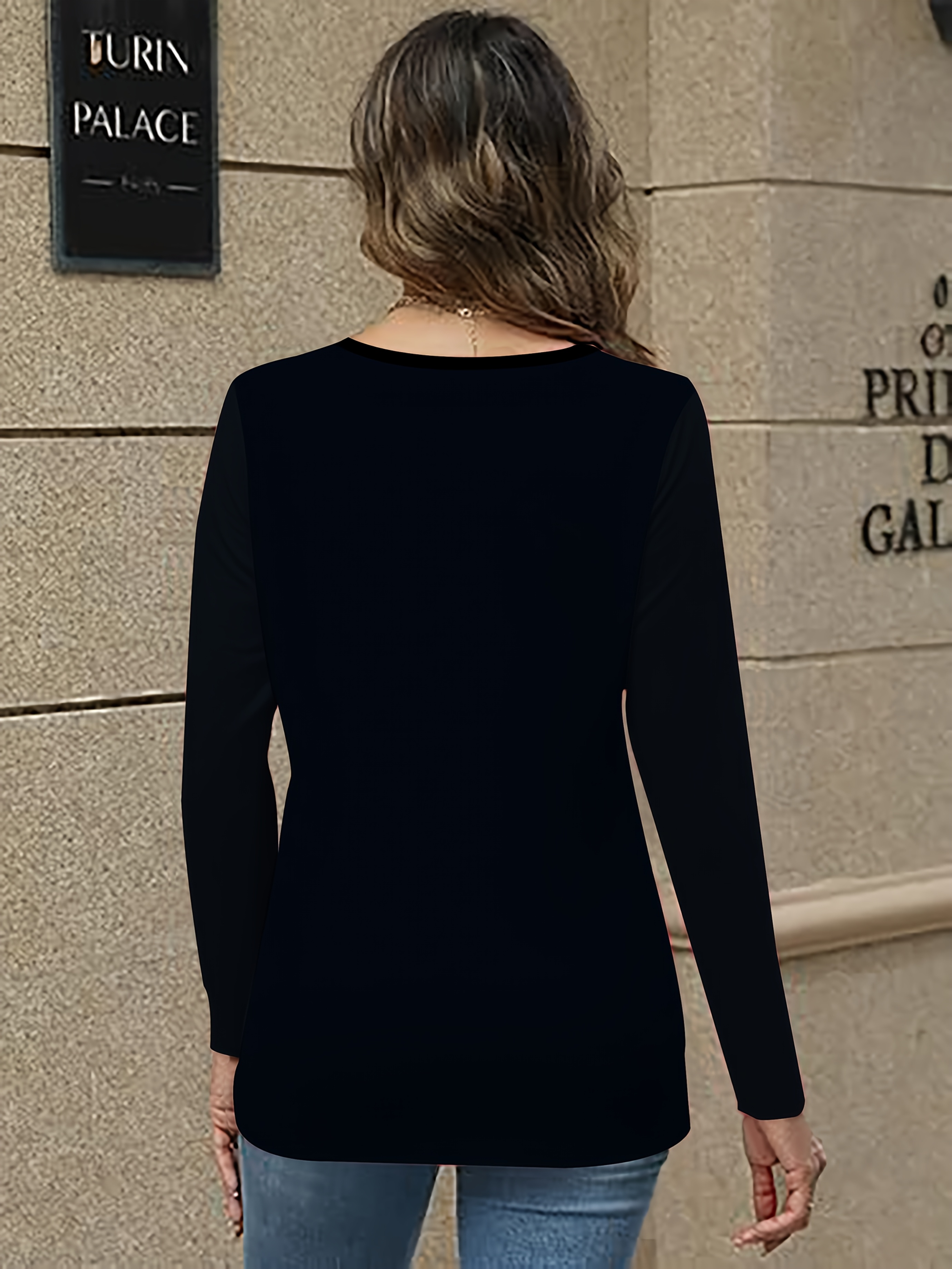 Women'S Elegant V-Neck Long Sleeve T-Shirt with Adorable Kitten Print - Soft Polyester Blend, Casual Comfort Fit, All-Season Wear, Machine Washable, Cute T Shirts