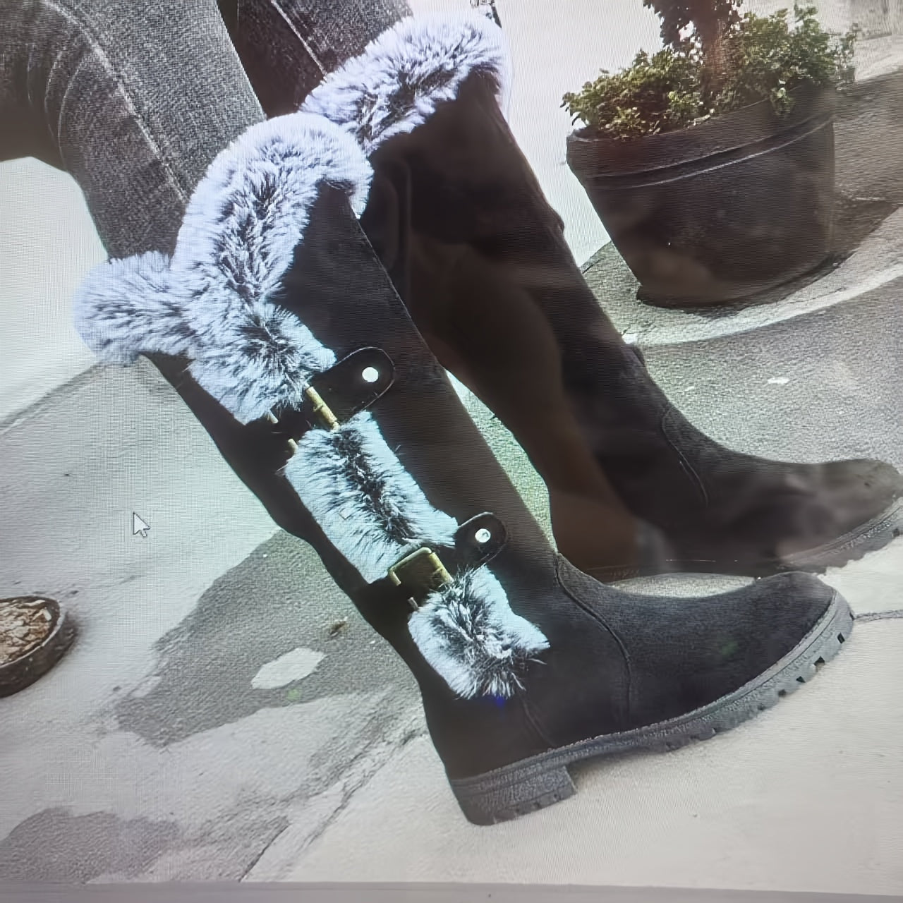 Women'S Winter Warm Fleece-Lined Mid-Calf Boots with Plush Lining & faux fur Trim - Slip-On Round Toe Chunky Heel, PU Sole for Traction on Snowy/icy Conditions, & faux fur Collar & Cuff, Winter Boots | Plush Lined Interior |